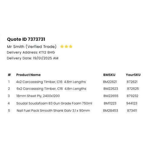 Import/export the data from your own system OR quickly complete the quote sheet for the items you will provide, and then relax and wait for the order!